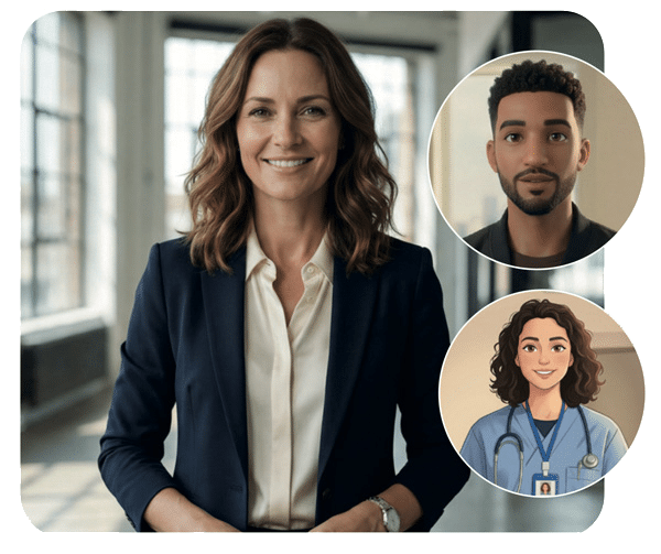 Nos avatars sont disponibles en plusieurs formats (réaliste, animé, 3D) pour s’adapter à votre image et à vos usages.