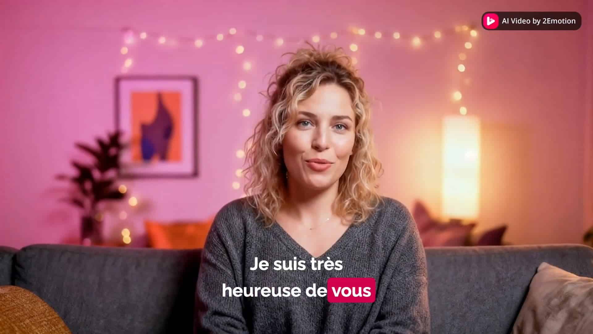 Personnalisez votre avatar IA (visage, voix, ton) en quelques minutes. Choississez le décor, la langue, les sous-titres : tout se fait sans tournage. Générez une vidéo de qualité cinématographique, simple à maîtriser et redoutablement efficace.